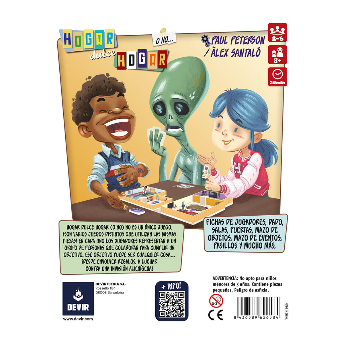 Hogar Dulce Hogar o No es un juego de mesa cooperativo de Paul Peterson, autor que se caracteriza por firmar juegos donde prima el humor como Smash Up o Guillotine y que son garantía de pasar un buen rato en compañía de familia y amigos. En este caso, Hogar Dulce Hogar o No es un juego cuya mecánica principal es el pick up & deliver en el que de 2 a 5 jugadores tendrán que colaborar para conseguir el objetivo de cada una de las 5 misiones que se incluyen en el juego.