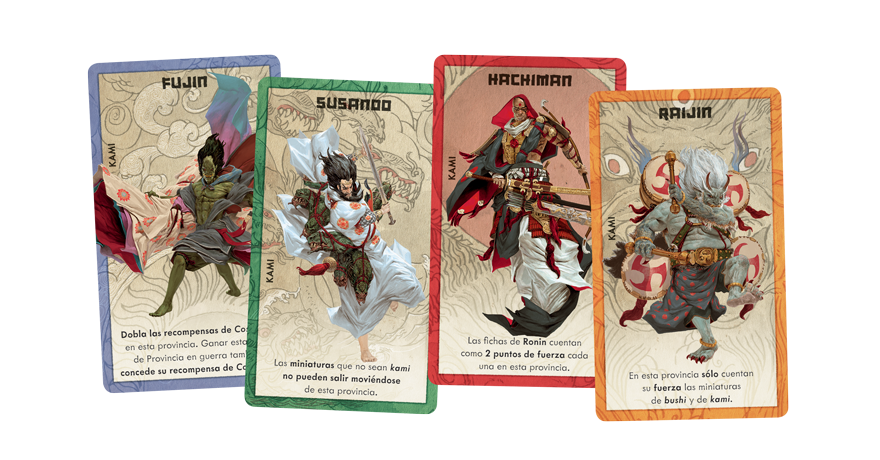 La expansión Kami desatados convierte a los kami en una verdadera fuerza que hay que tener en cuenta. En lugar de limitarse a ofrecer una capacidad al clan que les rece en cada turno de kami, ahora los kami bajan al tablero y ayudan a los clanes en sus conflictos. Estas miniaturas de kami no sólo se unirán al clan que más les rece para prestarles su fuerza inmortal, sino que cada una aporta un poder único al juego que cambia las reglas de la provincia que ocupe.