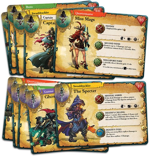 Cada facción tiene cinco tipos de héroes a su disposición: Capitán, Intendente, Espadachín, Artillero y Bruto, y cada uno de ellos desempeña un papel diferente en la batalla. Cada héroe es único y posee su propio conjunto de ataques, capacidades y reacciones con las que aplastar al enemigo o dar a su tripulación el empujón que necesitan.